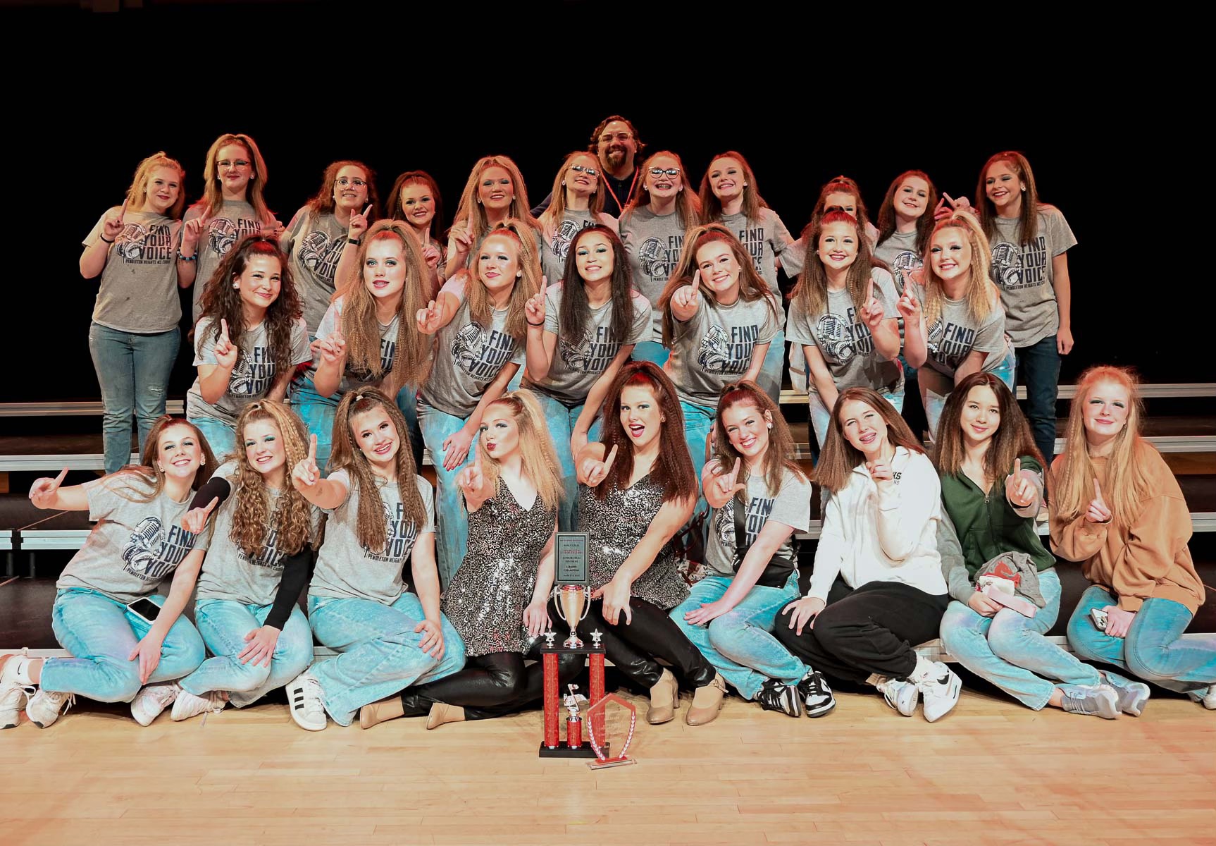 One of my happiest accomplishments has been to start the Show Choir program at Pendleton Heights High School. Decades before my arrival at the district, my one of my predecessors/mentors had previously taken the Emerald Suites (all girls) group to festivals and competitions. However, based on the word of Jim Scott, who had been in the district for nearly fifty years, the Pendletones had never competed in a Show Choir competition. In the past the program had participated in festivals and showcases, but not actual competitions. It is my honor to start the program and to be the first to take the Pendletones to Show Choir competition. It is now a regular weekend expectation that both the top varsity groups compete around the state and earn consistently earn grand champion. In 2022 both of these varsity groups, under the direction of Erin Archer, won the State Championship. As the feeder program for the high school program, I was extremely proud of the students and excited for the community for their huge and history accomplishment.